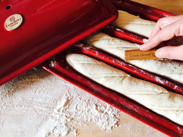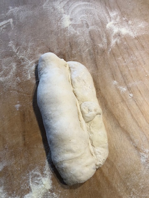 Trascorso questo tempo di riposo , dividere l’impasto in tre parti dello stesso peso, allargare il panetto in un rettangolo, piegare il lato più lungo del rettangolo verso il centro, quindi arrotolare ed allungare delicatamente, posizionarle i filoni all’interno dello stampo infarinato
