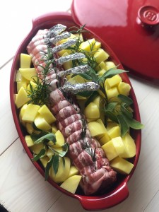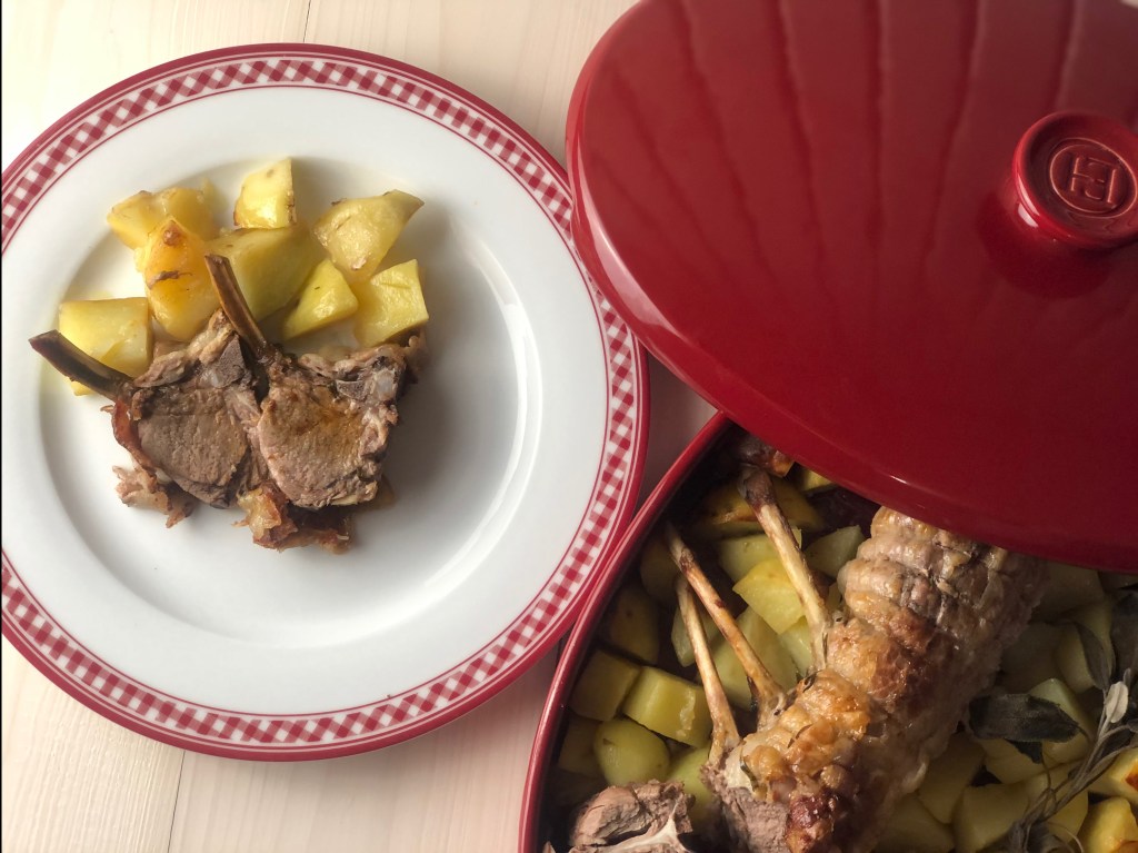 L’agnello con le patate è un tipico piatto delle feste, il carré è un taglio di carne molto pregiato, in questo caso l’ho spennellato con della senape e avvolto nella pancetta.