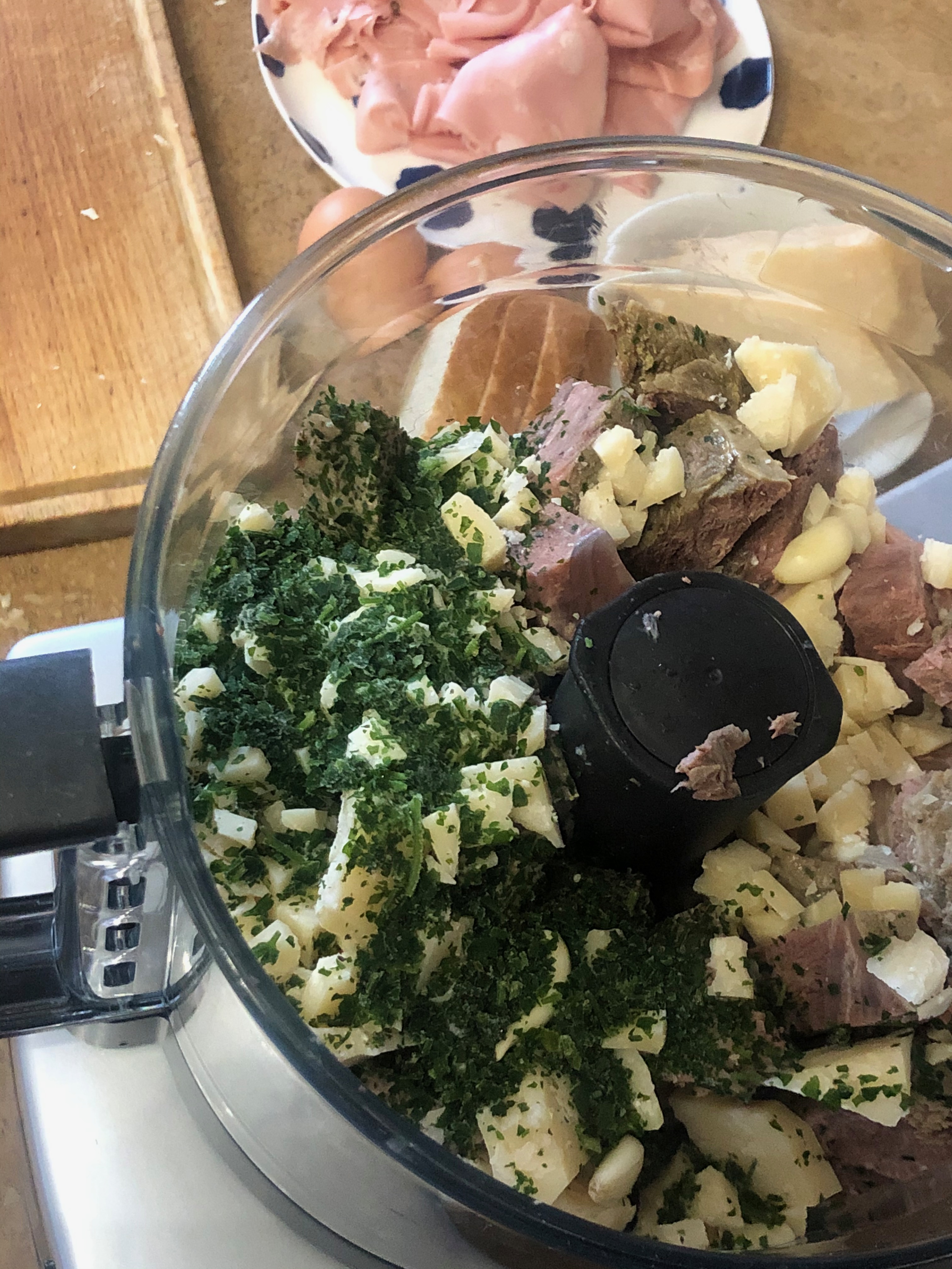Ora un ottimo piatto di recupero con gli avanzi di carni già cotte, soprattutto di bollito, impastate con pane bagnato nel latte, uova, parmigiano, mortadella e, per finire, aglio e prezzemolo.