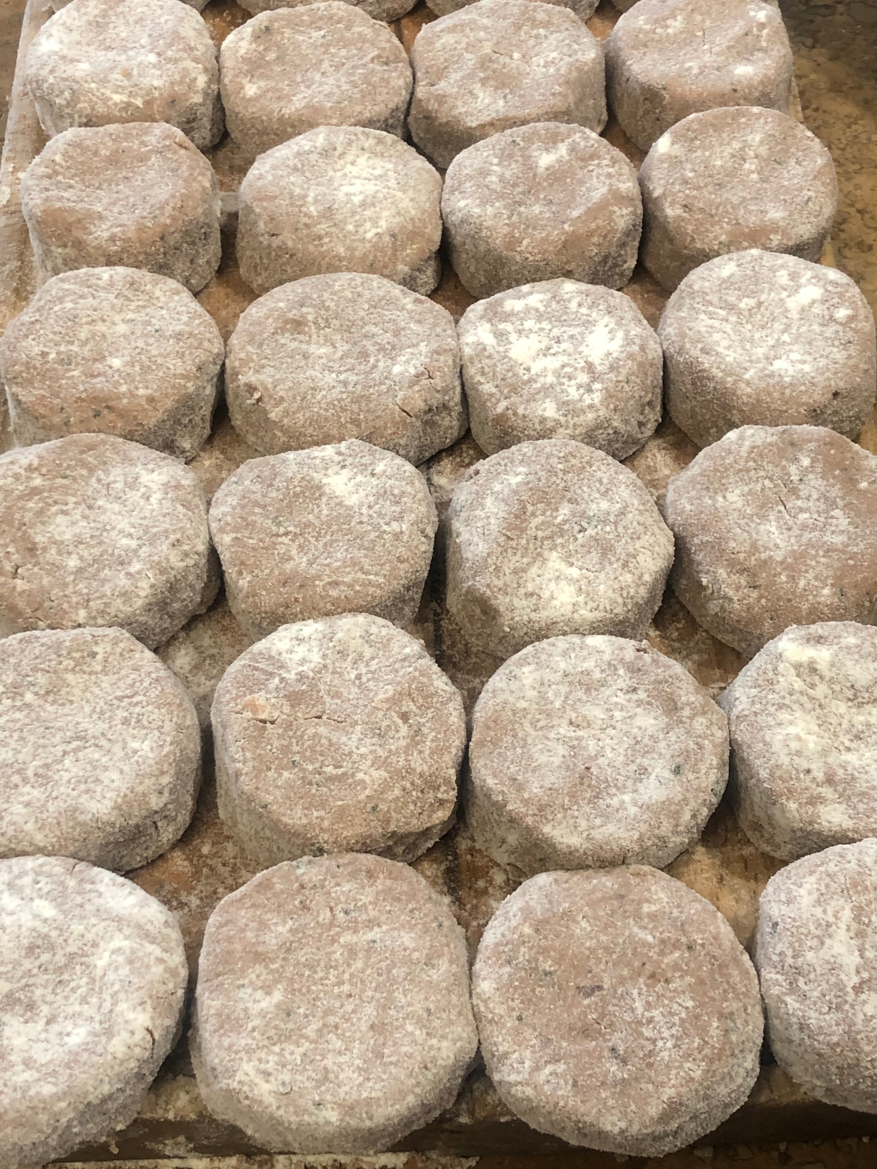 Prendere una noce di composto, formare le polpette formando delle palline schiacciate, passarle nella farina00.
