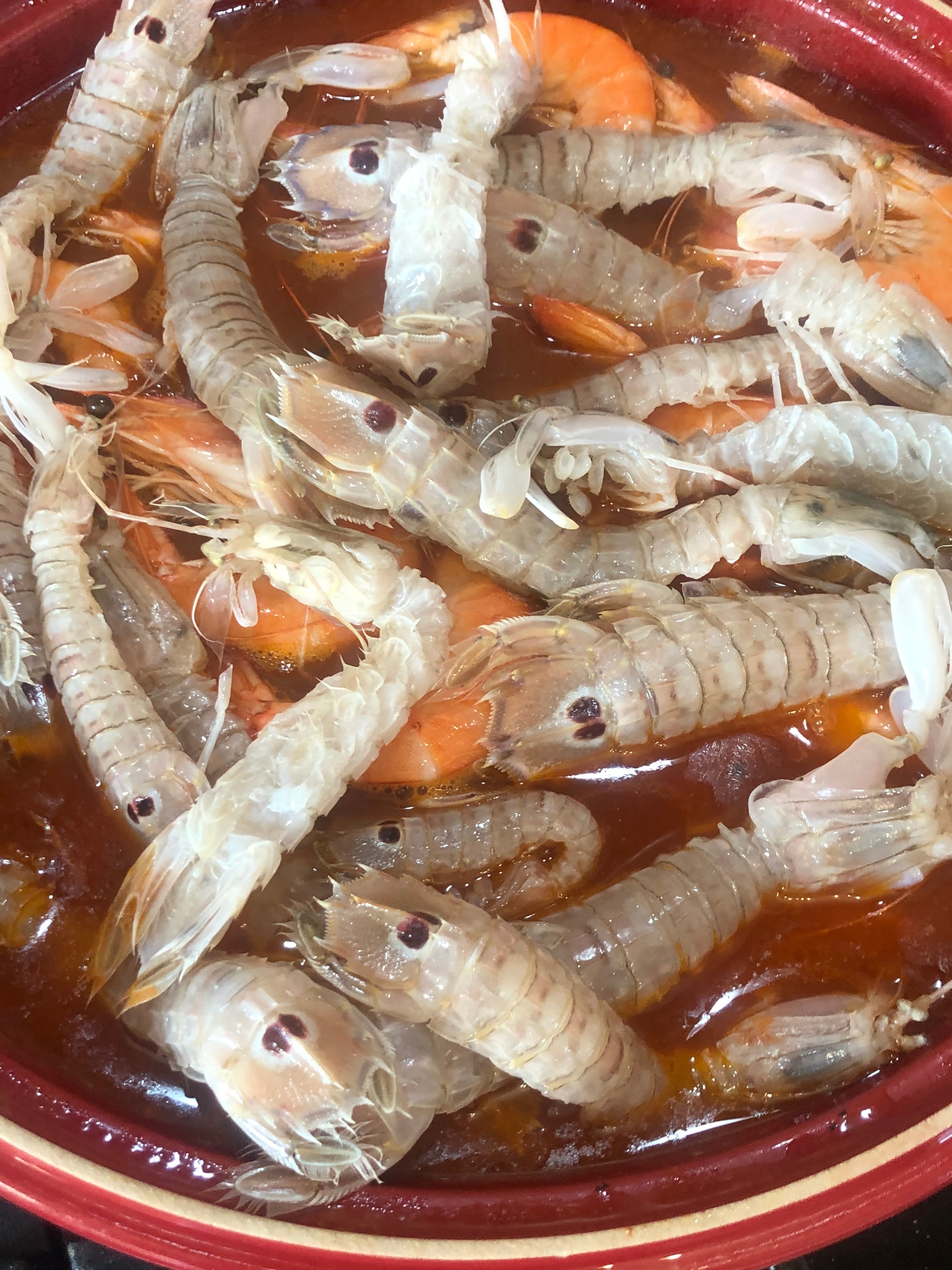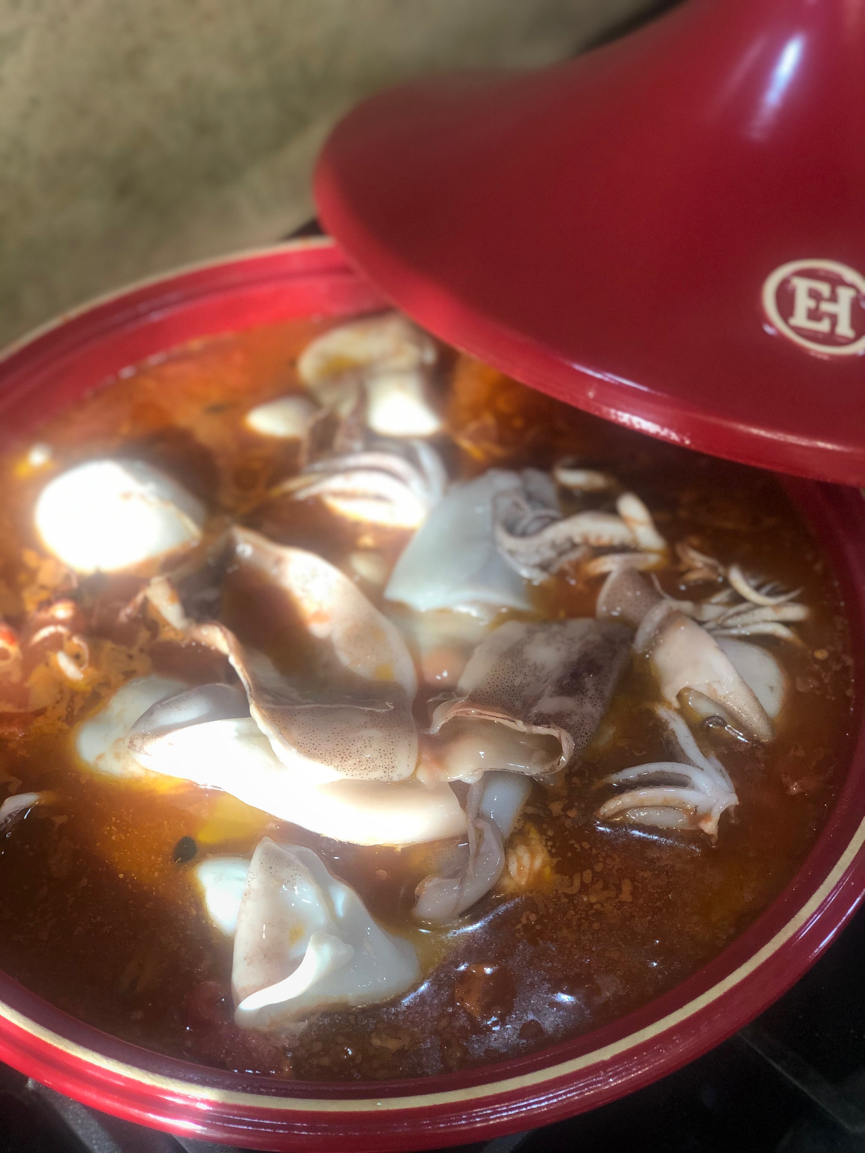 Trascorso questo tempo aggiungere i totani e cuocere per altri 10 minuti. Unire il resto del pesce, unire il sale e correggere con il peperoncino, terminare la cottura per alti 15/20 minuti.