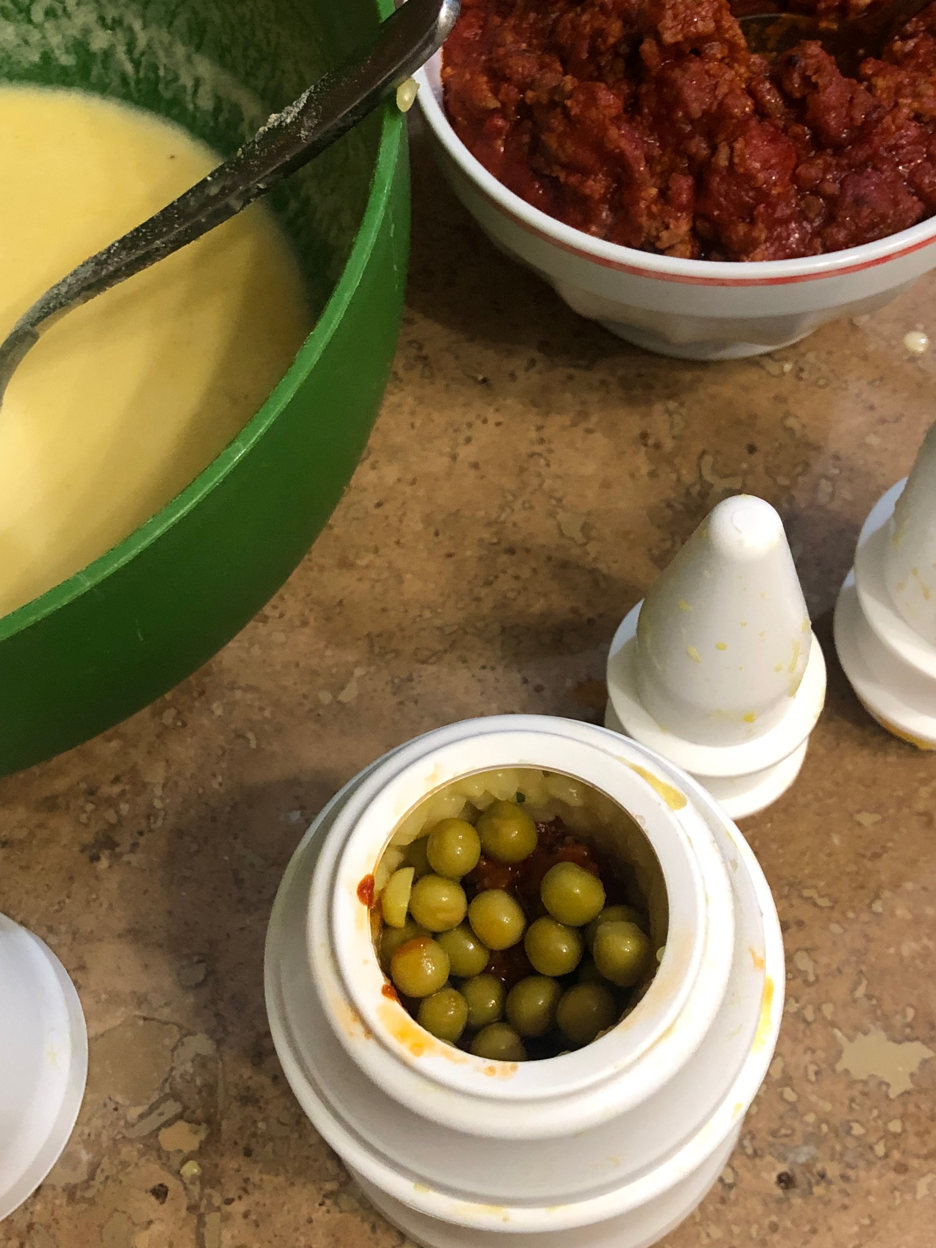 Riempite la base dell’arancinotto con un cucchiaio, inserite lo stantuffo in profondità, estraetelo e farcite con ragù e piselli, infine, terminate con altro riso.
