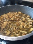 In una padella soffriggete l’aglio intero, aggiungete i funghi e cuocete a fuoco vivace per 10 minuti, salate pepate e continuate la cottura per circa 20 minuti, eliminate gli spicchi di aglio.