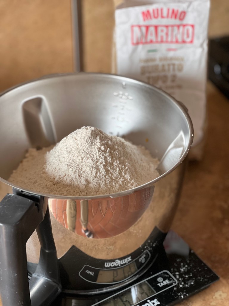 – Versate l’impasto sulla spianatoia e lavorate energicamente per almeno 10 minuti