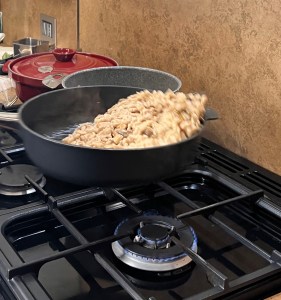 Nel frattempo in una padella sciogliere il burro, trifolate i funghi e le castagne , spadellare gli spatzle terminare con parmigiano e servire .