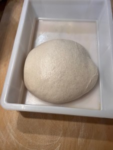 Aggiungere la farina e lavorare per qualche minuto , aggiungere il sale Quando l’impasto sara ben incordato rovesciarlo sulla spianatoia , coprire con una ciotola per 15 minuti, trascorso questo tempo formare delle pieghe di forza , fare questa ultima operazione per quattro volte , quando l’impasto sara ben lavorato metterlo in un contenitore coperto,coperto, trasferirlo in frigorifero per 20 ore