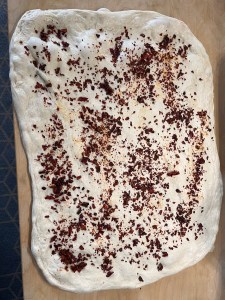Stendere sulla spianatoia allargando l’impasto creando un grane rettangolo