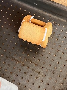 utilizzarla per montare i pezzi delle casette , e decorare a piacere i biscotti