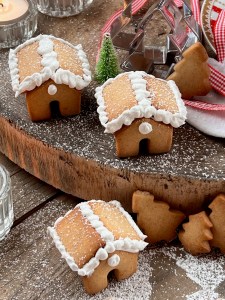 non possono certo mancare i biscotti pan di zenzero sulle nostre tavole delle feste ,belli ed irresistibili , friabili e buonissimi per grandi e piccini farli in varie forme , la casetta , l’omino , l’aberello e tantissime altri stampini, io ho utilizzato quelli di Birkmann , bellissimo l’omino gigante e la casetta da costruire , la stella e il babbo natale ecc…