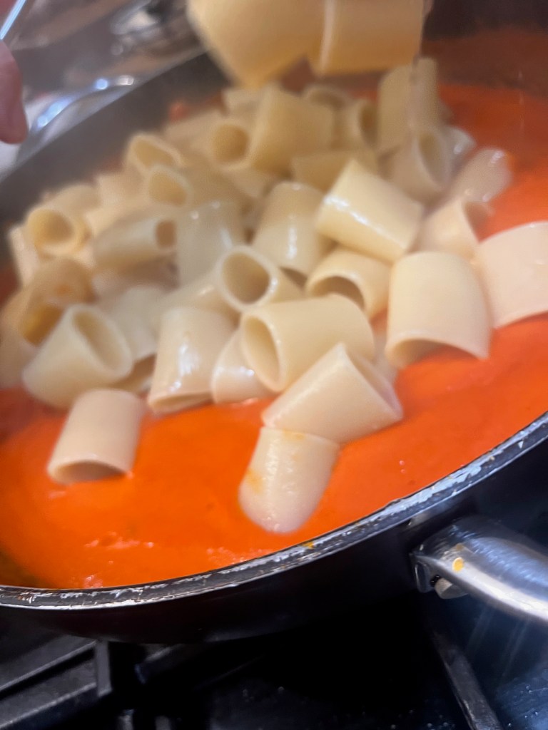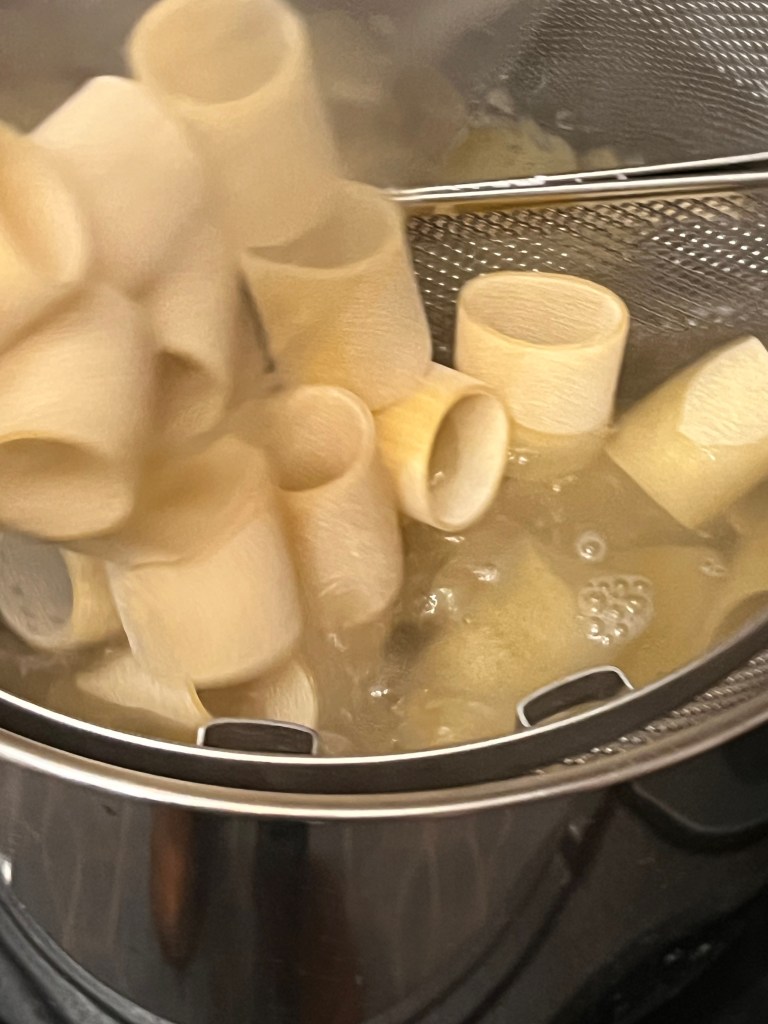 nel frattemo portare ad ebbollizione abbondante acqua salata e cuocere i paccheri