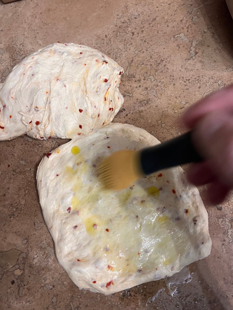 Riponete l’impasto in una ciotola oliata e coprite con della pellicola e lasciate lievitare per almeno 5 ore