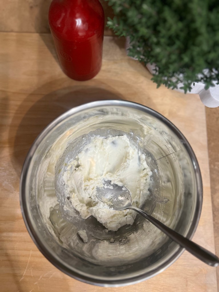 preparare il ripieno , in una ciotola mischiare il caprino con olio sale e pepe ed inserirlo in un sac à poche .