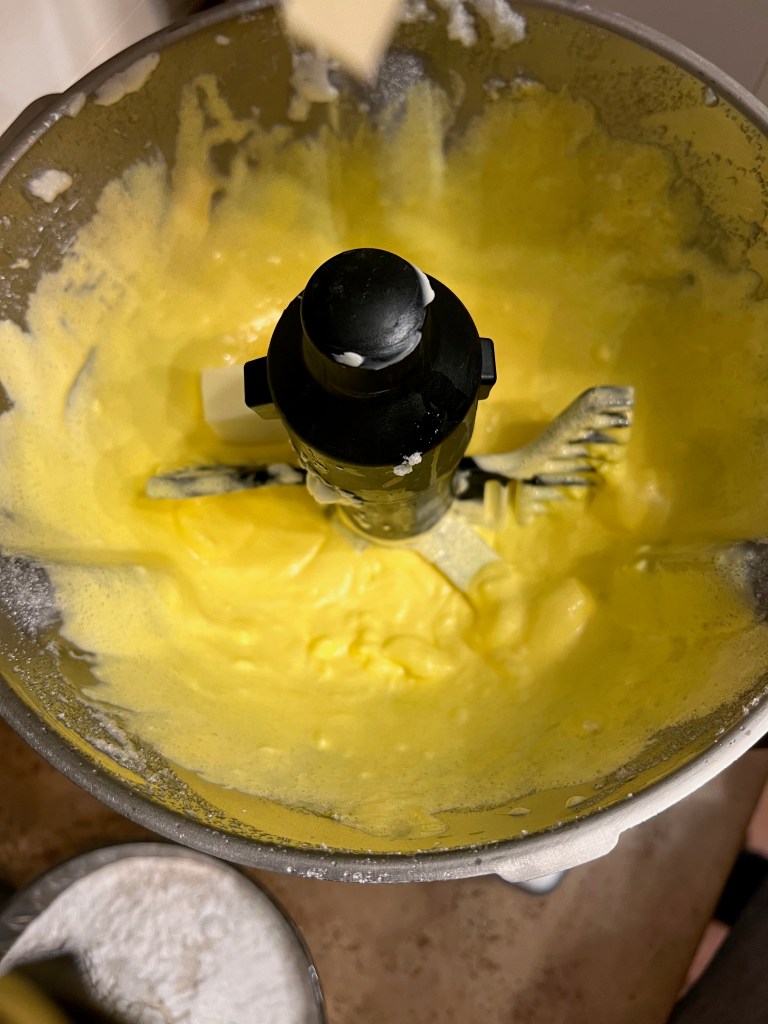 lavorare i tuorli con lo zucchero ed aggiungere il burro fino ad ottenere un composto omogeneo