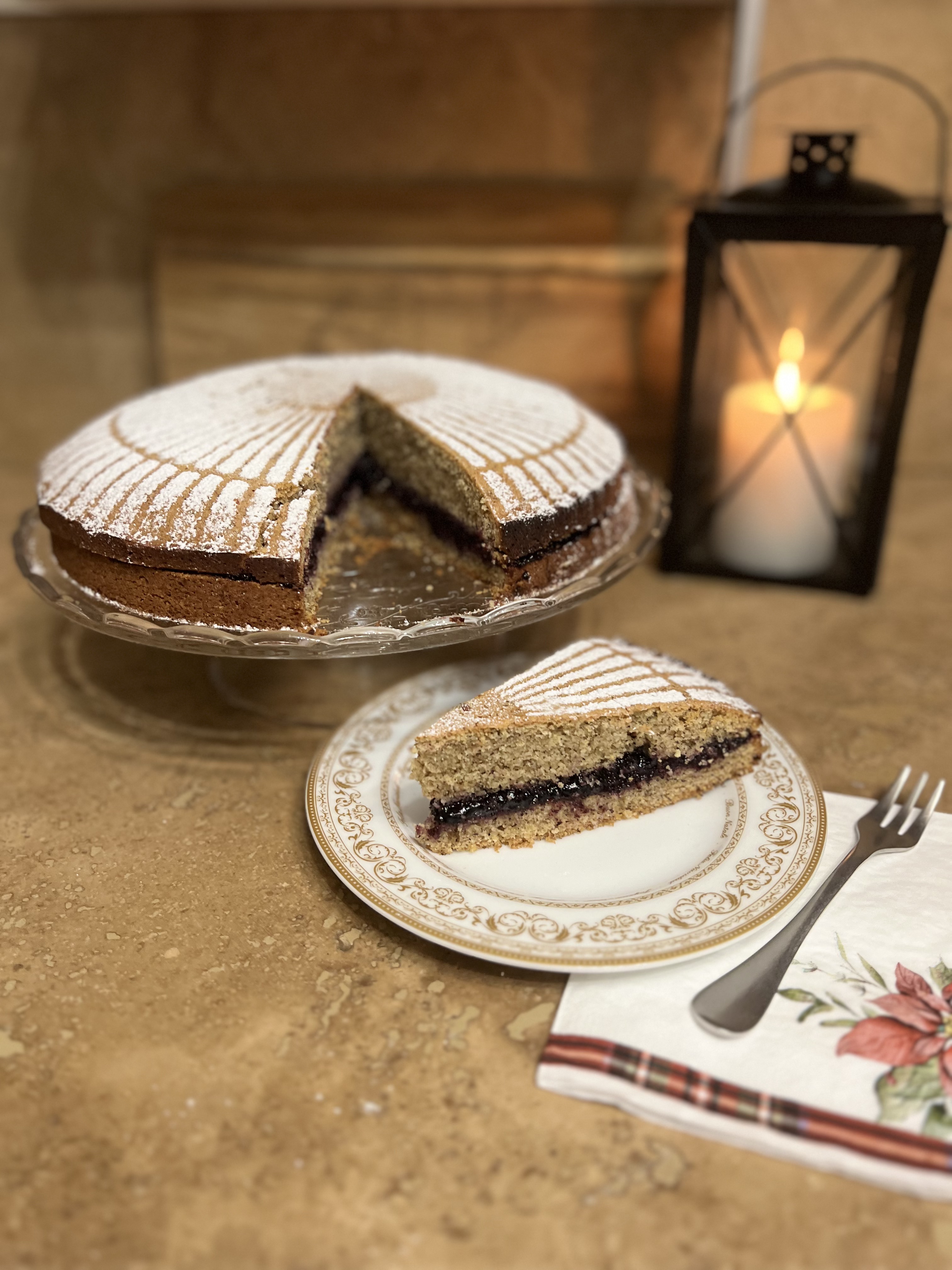 Un dolce della tradizione altoadesina , farcita con la marmellata di mirtilli , un dolce semplice senza glutine .