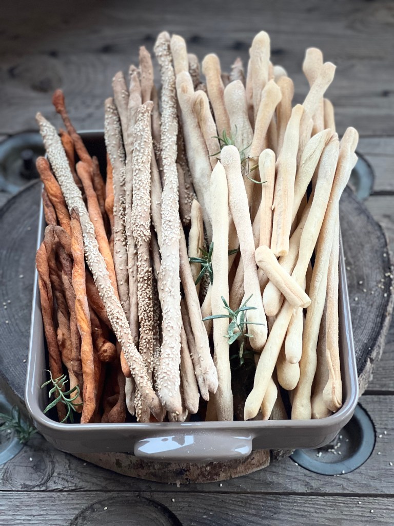 Realizzare i grissini in casa é una lavorazione semplice , un po di pazienza per allungarli uno a uno , un ottimo sostituto del pane , ma soprattutto un grissino é quel pane divertente e appetitoso , non solo da mettere a tavola per pranzo e cena ma anche per un simpatico aperitivo , possiamo realizzarli in mille gusti e colori , io ho pensato a tre diversi gusti , colatura d’alici , pomodoro e paprica e per finire cereali e sesamo .