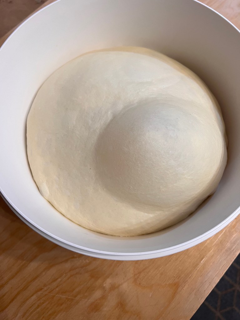 riporre in ciotola coperta , lasciare lievitare un ora e riporre in frigorifero per 9 ora ,riclimatizare l’impasto a temperatira ambiente per un ora circa ,