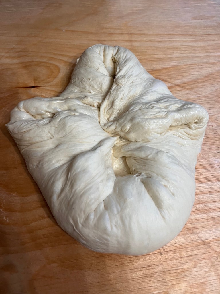 ottenuto il composto liscio ed omogeneio fare un giro di pieghe per tre volte ogni 30 minuti.