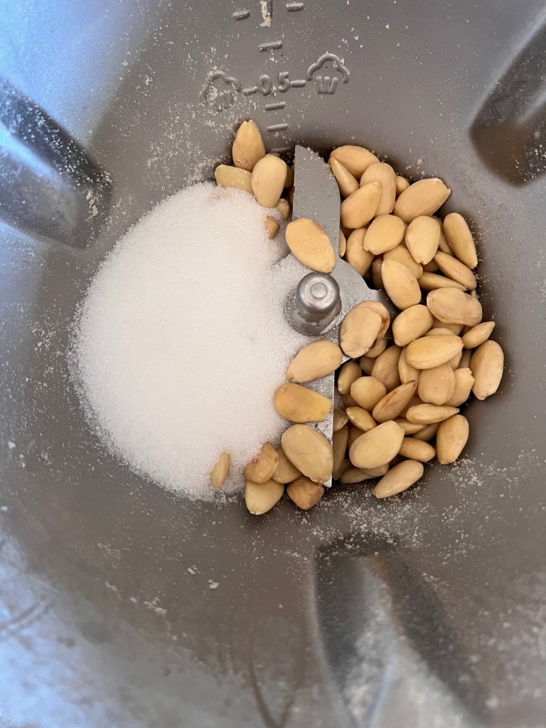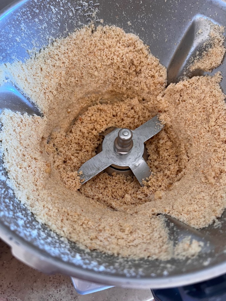 Utilizzare un robot da cucina , zucchero e nocciole / mandorle , lavorare fino a ridurre in polvere ,