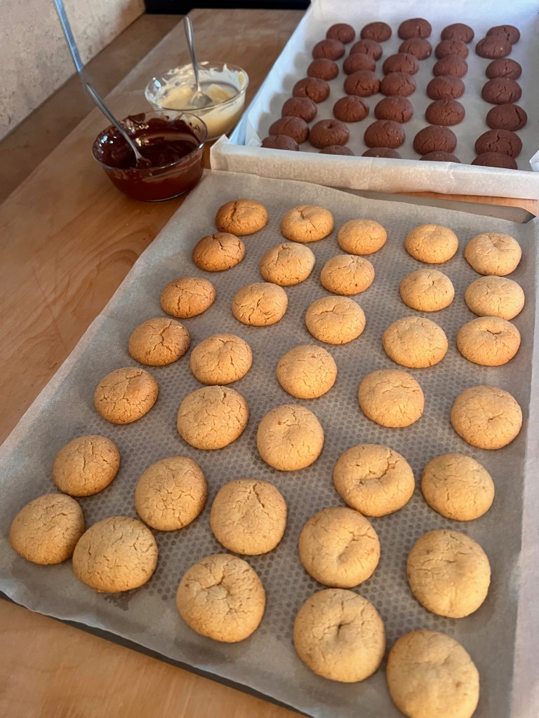 I baci di dama alle nocciole e alle mandorle sono dei deliziosi dolcetti con aggiunta di cioccolato fondente per quelli alle nocciole mentre per quelli alle mandorle e cacao con cioccolato bianco.