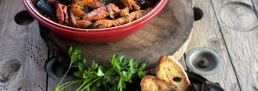 La zuppa di pesce, servita con due fette di pane tostato diventa un saporitissimo piatto unico. La scelta di utilizzare la tajine per questa ricetta, è per le sue peculiarità , uno strumento che permette la cottura in umido ed é ideale per le zuppe. INGREDIENTI per 4 persone 1 kg di polpo500 gr di… Continua a leggere Zuppa di pesce in Tajine
